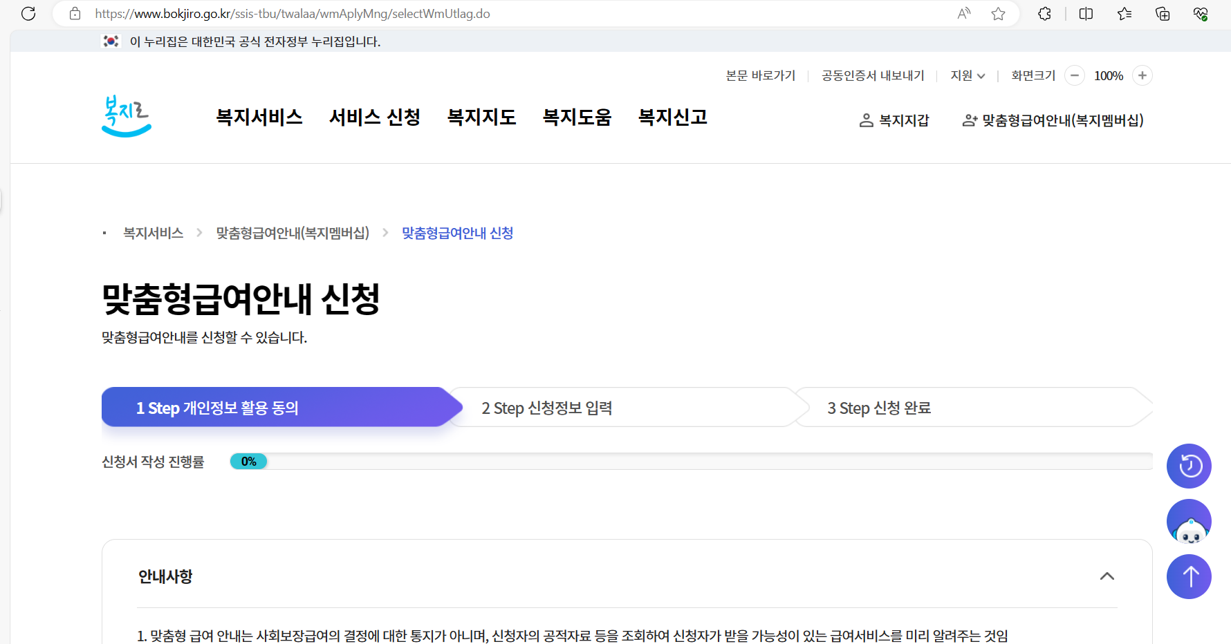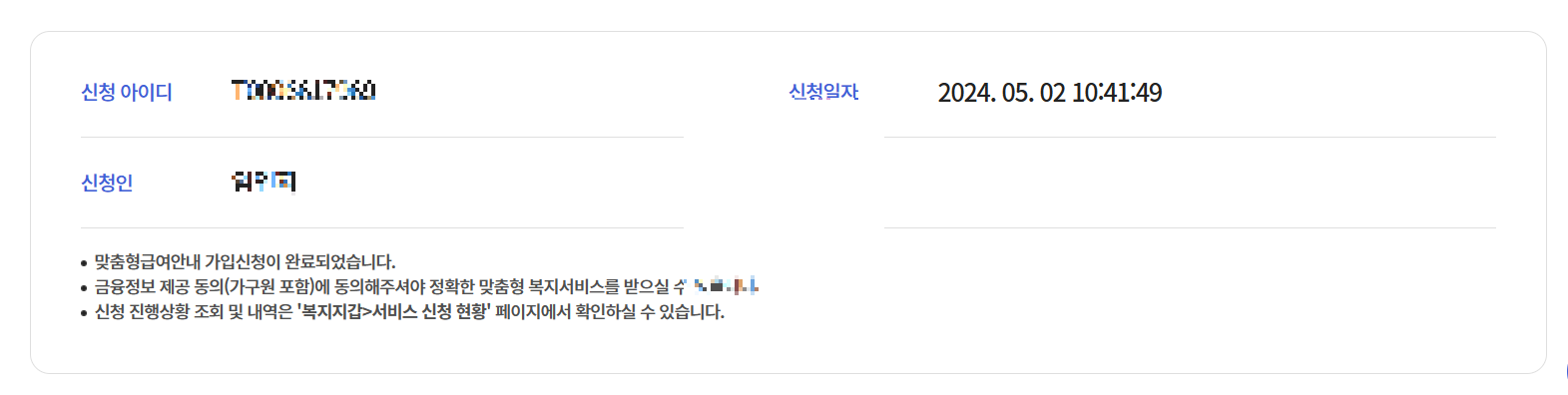 6) 맞춤형 급여서비스 신청이 완료되었습니다.