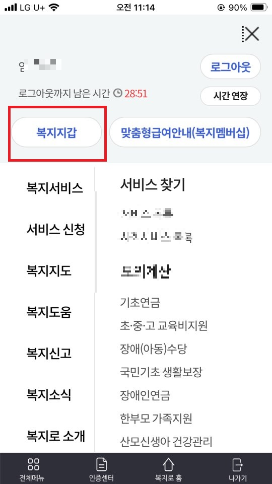 2) 복지로 앱 설치후 화면에 보이는 자주찾는 서비스 메뉴의 맞춤형급여안내(복지멤버십) 클릭하셔서 간편인증 후 신청을 완료해 주시면 되고, 신청 후에는 ' 복지지갑' 메뉴에서 신청현황 및 각종 조회를 하실 수 있습니다.