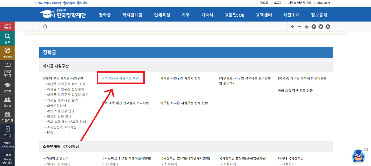 그렇다면 나의 학자금 지원구간이 어디에 해당하는지 궁금하실텐데요. 한국장학재단>장학금>나의학자금 지원구간 확인 메뉴에서 학자금 지원구간을 미리 파악하실 수 있습니다.↓