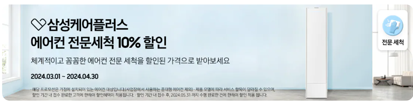 4월 30일 까지 에어컨 청소 예약 시 에어컨 전문세척 10% 할인 이벤트도 진행되고 있네요. 미리미리 예약하셔서 혜택도 챙겨보시기 바랍니다.