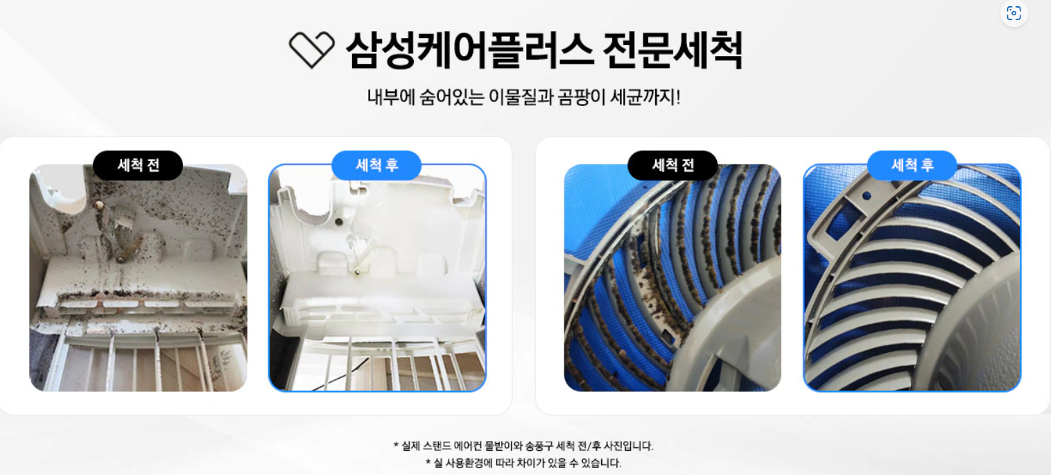 삼성케어플러스 서비스 센터에서 신청이 가능합니다. 에어컨 청소 가격은 다음과 같습니다.