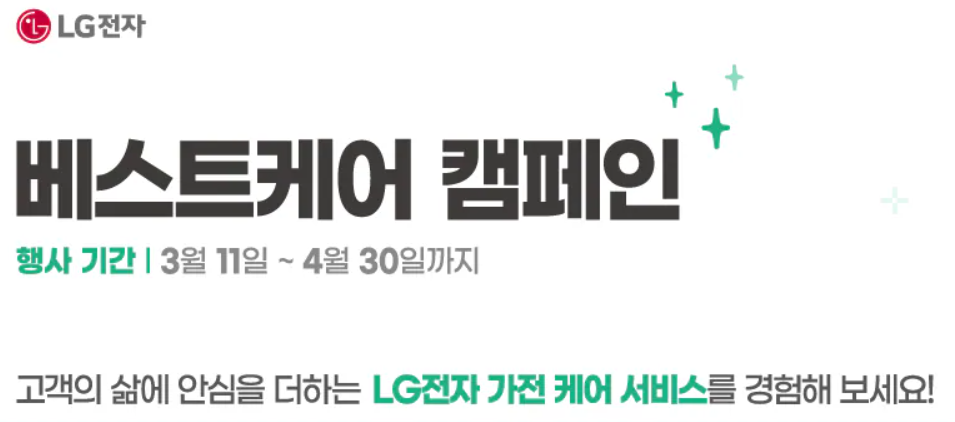LG 전자 베스트케어 캠페인으로 4월 30일까지 예약하신분께 에어컨 청소 비용 할인서비스를 적용 중이라고 하니 서두르세요.